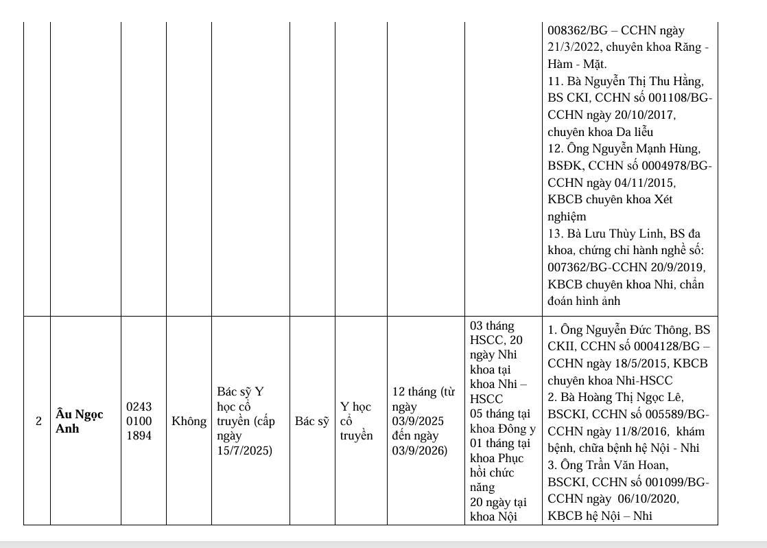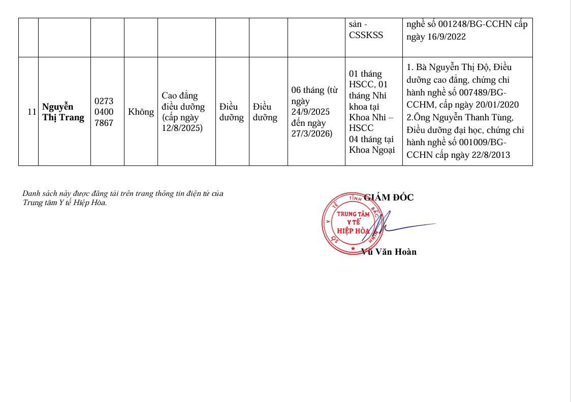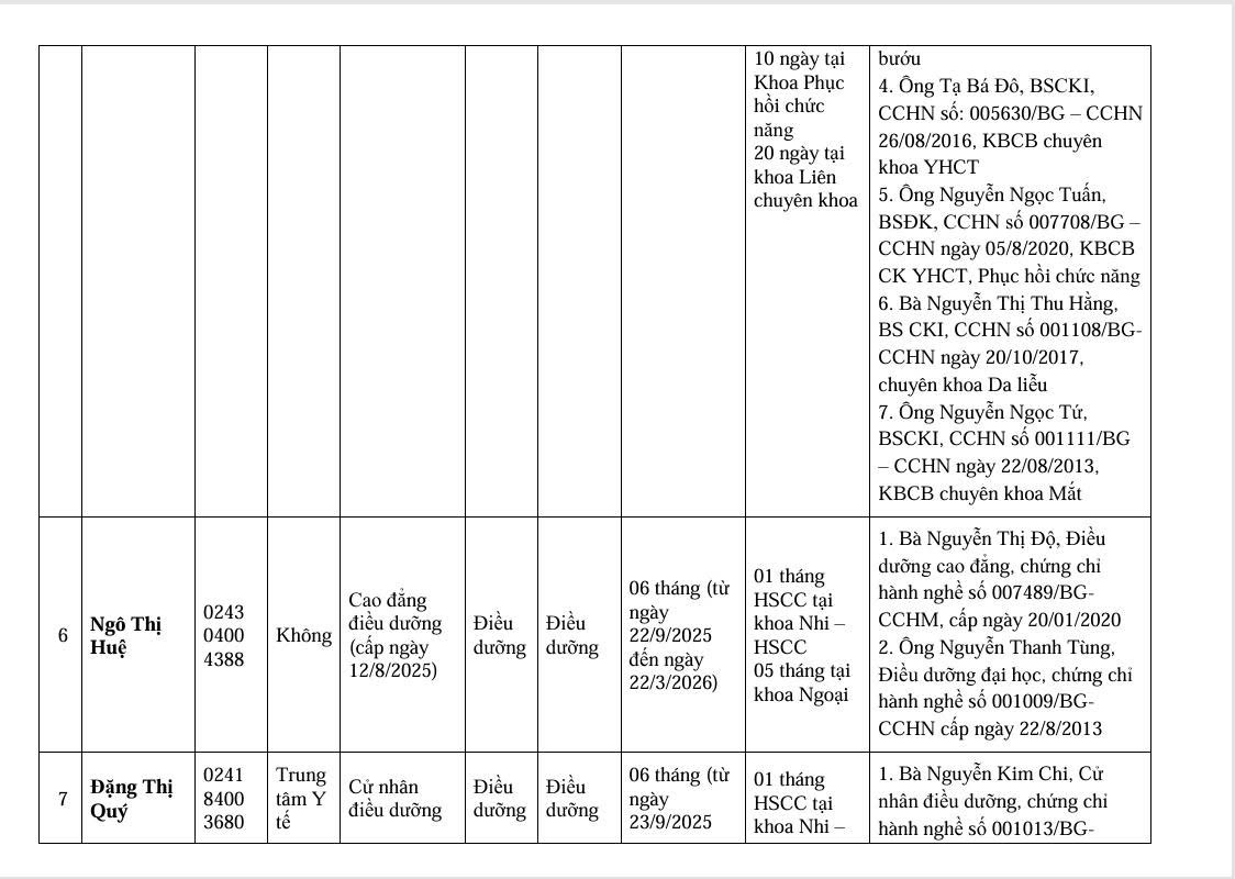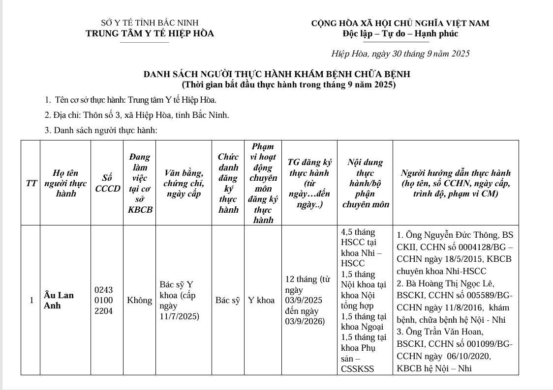 DANH SÁCH NGƯỜI ĐÃ HOÀN THÀNH QUÁ TRÌNH THỰC HÀNH KHÁM BỆNH, CHỮA BỆNH THÁNG 9 NĂM 2025